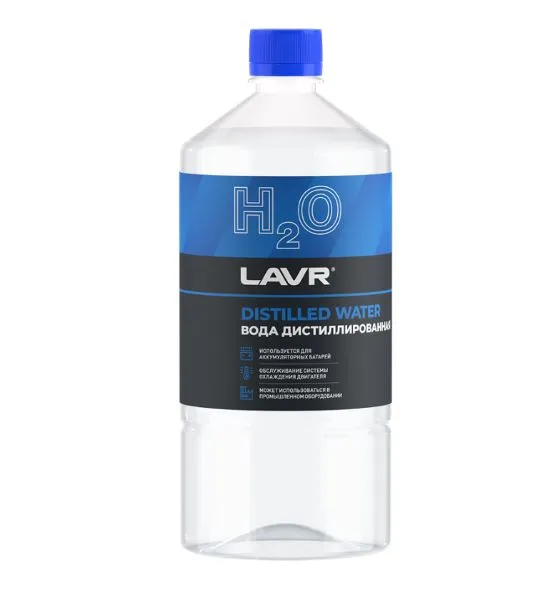 Дистиллированная вода высшей категории качества для обслуживания систем охлаждения ДВС и аккумуляторных батарей, разведения концентратов, использования в качестве омывающей жидкости. Вода изготовлена в соответствии с требованиями ГОСТ 58144-2018.